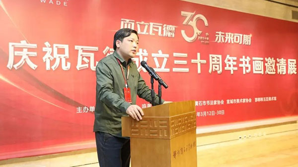 瓦德集團(tuán)董事長(zhǎng)謝富強(qiáng)向與會(huì)的各路藝術(shù)家及賓朋表達(dá)了熱情歡迎。向河北邯鄲、湖北黃石、安徽宣城三地文聯(lián)、書協(xié)、美協(xié)和書畫家們的大力支持表達(dá)了衷心感謝。尤其對(duì)中國(guó)知名書畫家,邯鄲市書協(xié)主席,文化名人,著名企業(yè)家韓玉臣先生對(duì)瓦德集團(tuán)慶典活動(dòng)的鼎力支持表達(dá)了深深的敬意和由衷地感謝。在三千年歷史的趙國(guó)都城邯鄲,能有瓦德集團(tuán)如此注重文化藝術(shù)的實(shí)屬難得,能將深厚的中國(guó)文化的脈絡(luò)注入到自己的企業(yè)產(chǎn)品中非常難得。